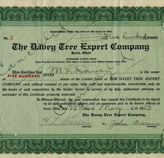 • 1977: Alexander M. Smith, CEO of Davey Tree and husband of Evangeline Davey, announces plans to sell the company.