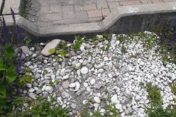 Sediment buildup – Like bare soil, eroded sediment from surrounding lawns, roads, and parking lots can collect on top of the mulch and can contribute to clogging the media over time. The GI should be inspected at least quarterly and any sediment should be removed with a flat shovel. Often it is easiest to remove some of the mulch along with the sediment and then reapply fresh mulch. Paved areas adjacent to the structure should be swept to remove debris before it enters the structure.