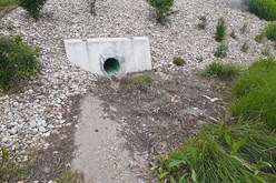 Bare eroded soil in or adjacent to the structure – Bare soil leads to erosion and sediment formation in the system which contributes to clogging the soil and gravel pores. Bare soil should be stabilized with turf or mulch as appropriate.- Dead/dying or missing plants – Dead or dying plants are an indication that the conditions in the GI have changed over time or that the plants chosen for the project have different cultural requirements and should be replaced with a more suitable species. Seventy-five percent of the area of the GI structure should be covered by native plants for proper function and aesthetic value.