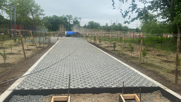 DRG guided the planting of native wetland species throughout the BMP, which act like sponges that filter stormwater and alleviate flood waters. DRG also oversaw the construction of a pervious gravel and paver access entrance, which will include installation of an educational sign explaining the benefits of the site. Residents have already commented on how flooding has decreased since construction of the BMP.