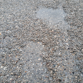 | Left: Standing water like the puddles pictured here indicates the pervious pavement isn’t draining properly. |