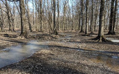 At Davey Resource Group (DRG), our team of scientists are highly capable of surveying for, and delineating wetlands year-round. In fact, winter is an opportune time to survey for and delineate wetlands for several reasons. First, once the leaves fall from trees and shrubs, and herbaceous vegetation dies back, forested settings become much easier environments to work in. Winter conditions allow the wetland delineators to see a site more clearly and to navigate a site more quickly and efficiently. Similarly, forested settings become much easier environments for land-survey crews to locate delineation flags. Winter surveys provide for more clear line-of-sight opportunities for conventional land-survey methods and a much clearer view of the sky for modern high-precision GPS land-survey methods. Thus, winter delineation is a win-win that can often translate into client savings.
